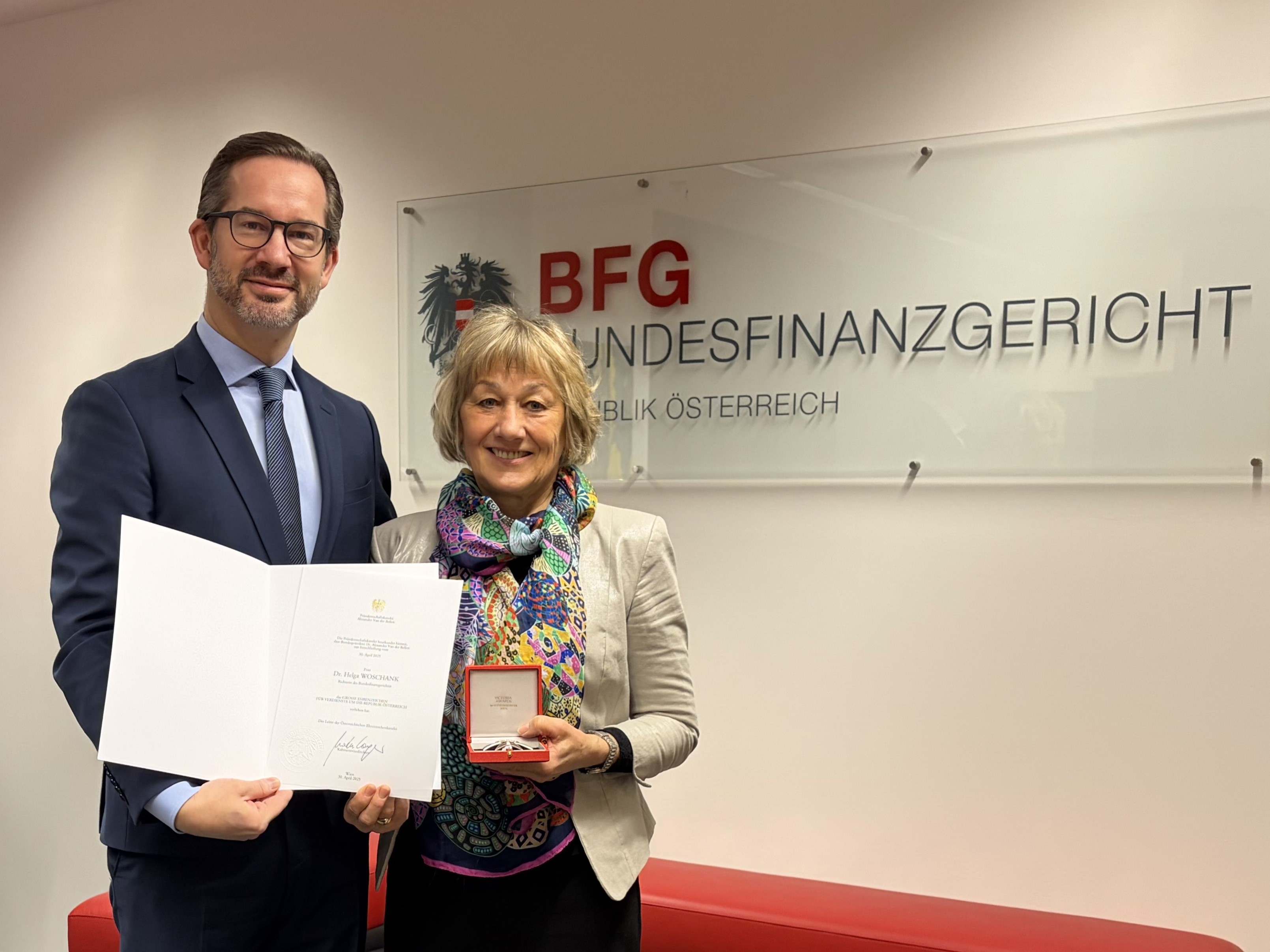 Präsident Dr. Peter Unger überreichte das vom Herrn Bundespräsidenten verliehene Große Ehrenzeichen der Republik Österreich an Dr.in Helga Woschank. Wir gratulieren herzlich!